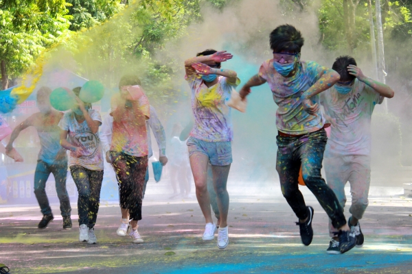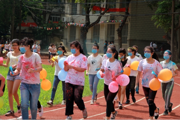 活動(dòng)伊始,曾春妮老師強(qiáng)調(diào)“本次活動(dòng)以?shī)蕵?lè)為主,繞著校園奔跑一圈,想怎么玩就怎么玩,安全第一。”期間,學(xué)生穿著穿白色T恤、佩戴時(shí)尚眼鏡、噴灑七彩玉米粉,你追我趕、相互嬉戲,現(xiàn)場(chǎng)氣氛好不熱鬧。