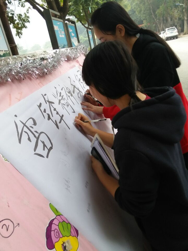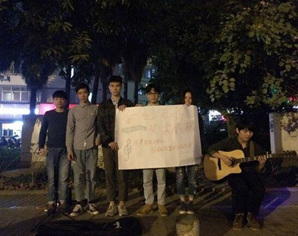 3月31日,音樂社在西鄉(xiāng)塘市場舉行“愛心無限,快樂奉獻(xiàn)”社團(tuán)義賣活動,通過街頭賣藝的方式為貧困山區(qū)兒童籌得善款115.5元。