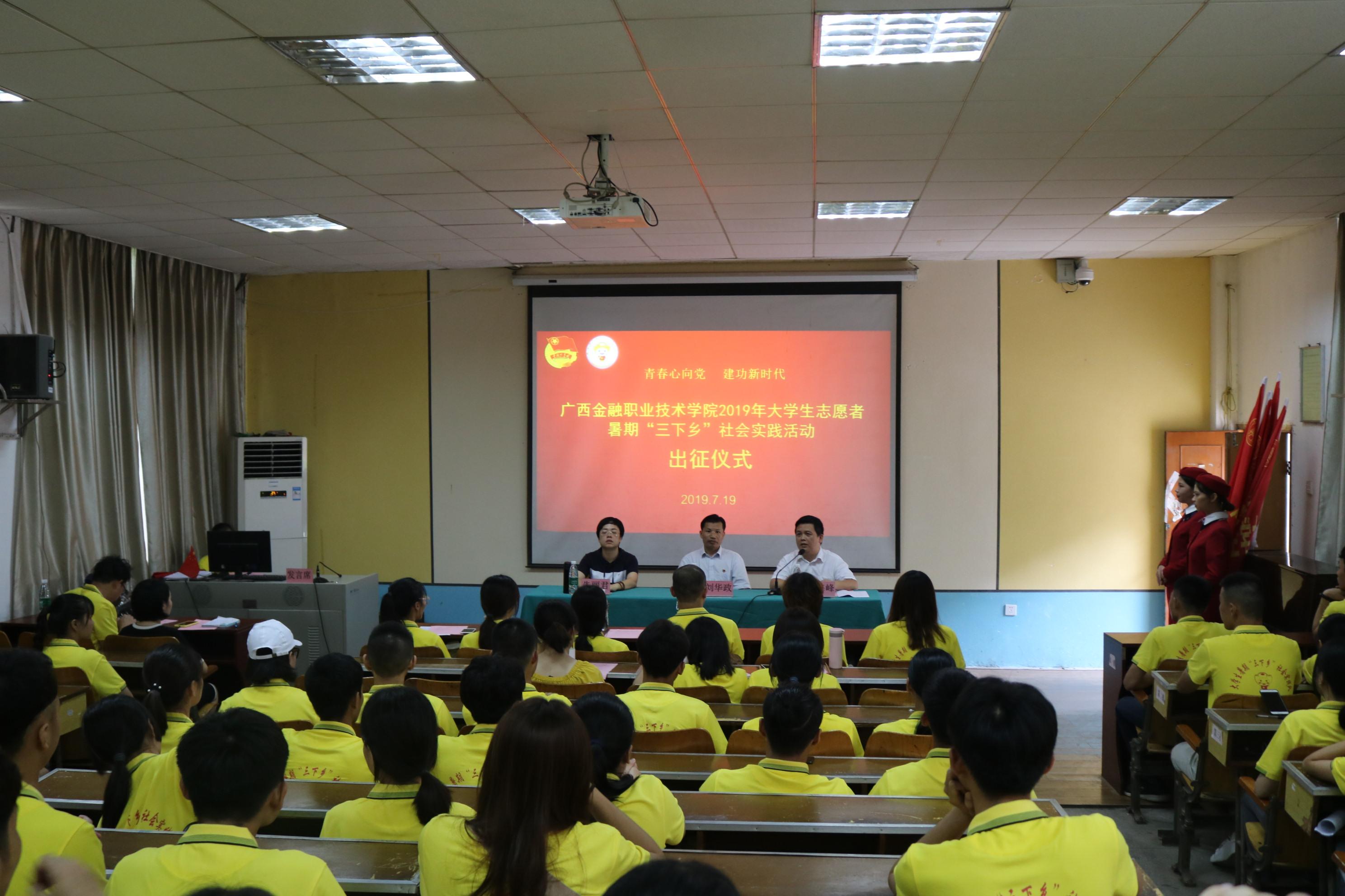 7月19日上午,“青春心向黨·建功新時代”廣西金融職業技術學院2019年大學生志愿者暑期“三下鄉”社會實踐活動出征儀式在電一教室舉行,學院黨委副書記、紀委書記劉華政出席并講話。