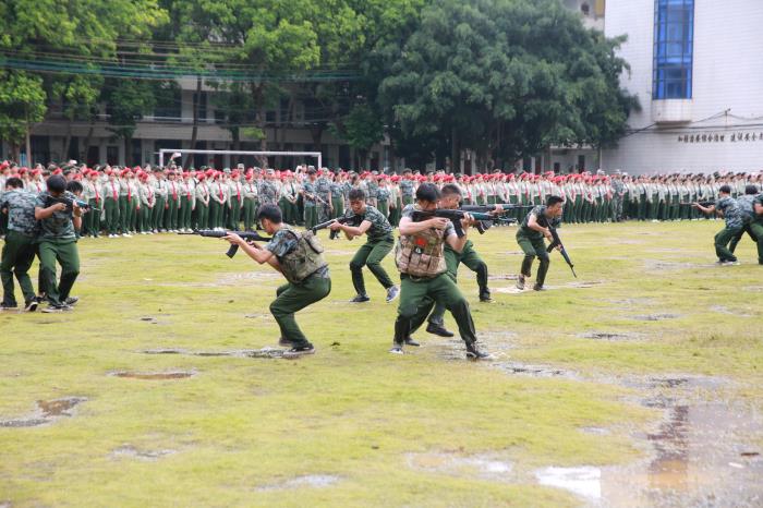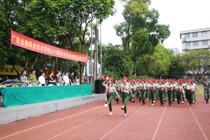 艷陽似火,沙場點兵。7月25日,廣西金融職業技術學院分別在東校區和長崗校區田徑運動場舉行2018級學生軍訓會操總結大會,對為期14天的軍訓作全面展示和總結。學校黨委書記沈立君、院長莫海燕、黨委副書記、紀委書記劉華政、副院長潘大勝,廣西陸戰國防教育訓練基地承訓領導和教官,以及各系主要負責人、全體2018級學生及輔導員參加了此次大會。