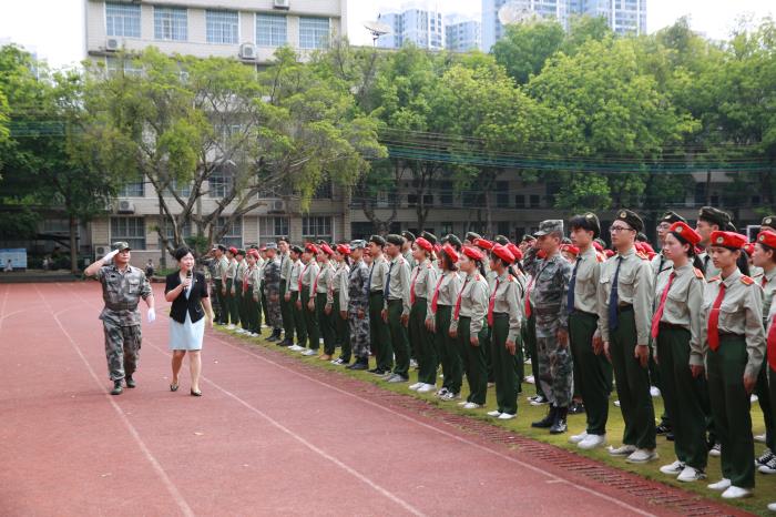 劉華政副書記、李愉團長檢閱軍訓成果