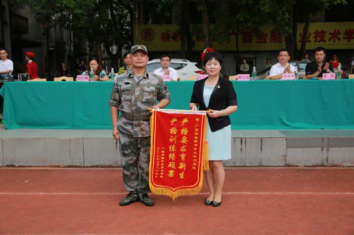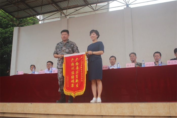 沈立君書記為廣西陸戰國防教育訓練基地唐立達團長頒發錦旗