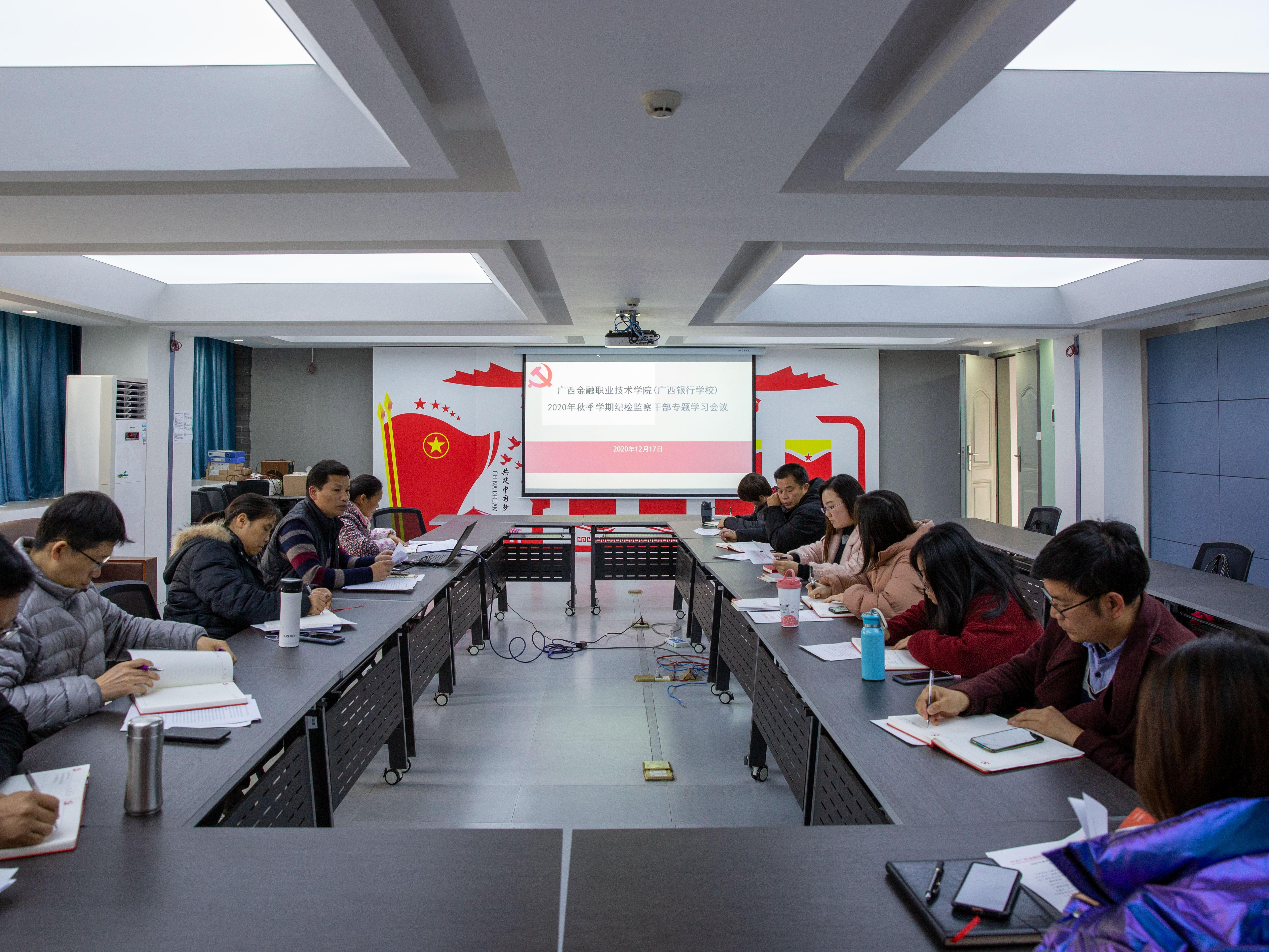 會上,紀檢監察室主持工作的副主任顏祖玲同志就學校黨委、紀委聯合印發的《關于對系部落實“民主集中制”情況開展專題調研的通知》(桂金職院黨[2020]88號)作了傳達和工作布置;劉華政同志就紀委“十四五”規劃的編制工作作了指導并對各黨支部紀檢工作2020年總結和2021年計劃的撰寫提出了要求。