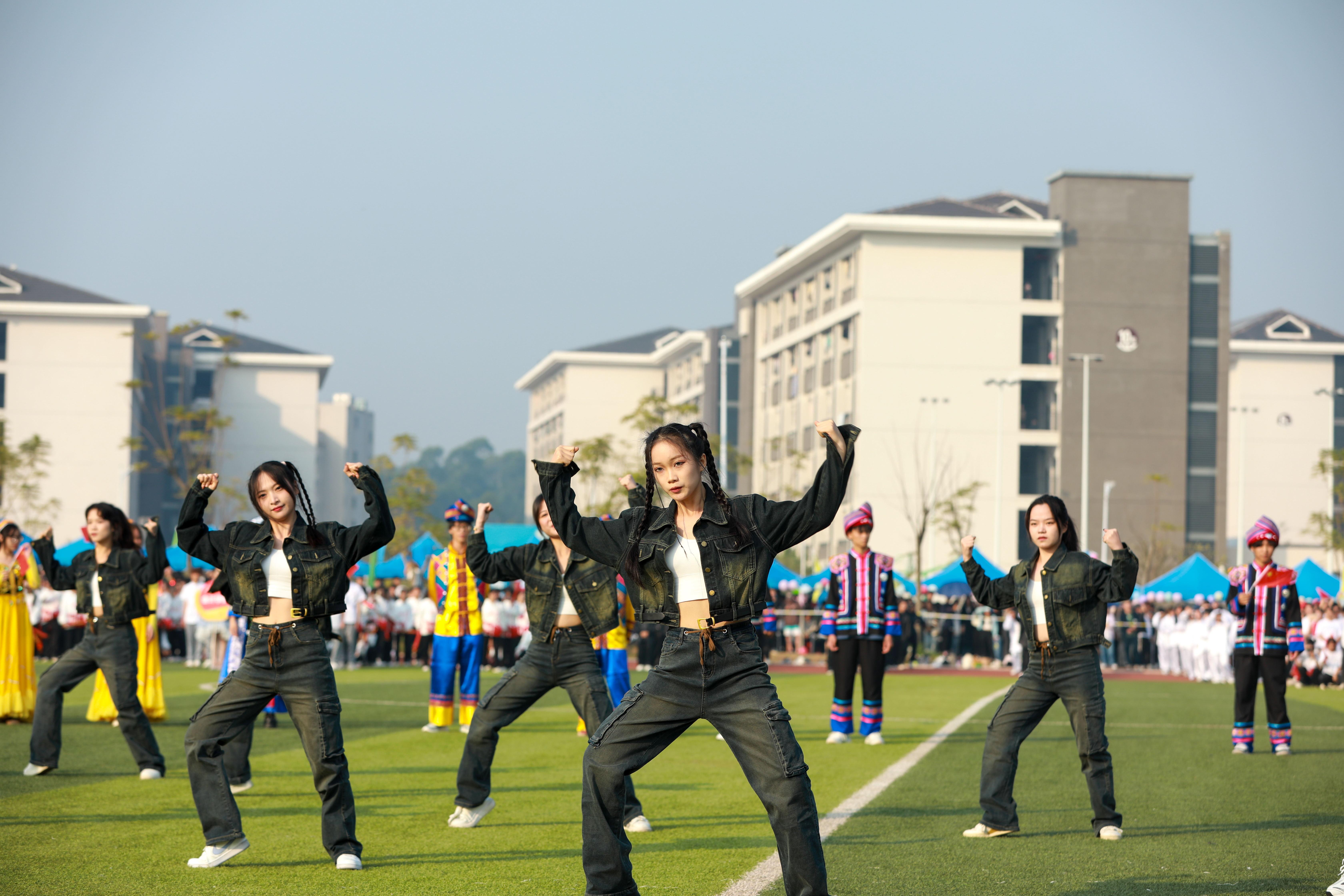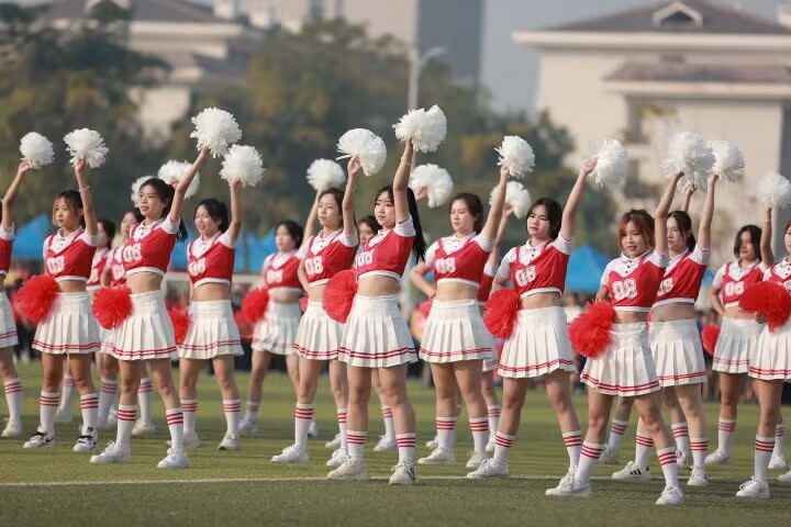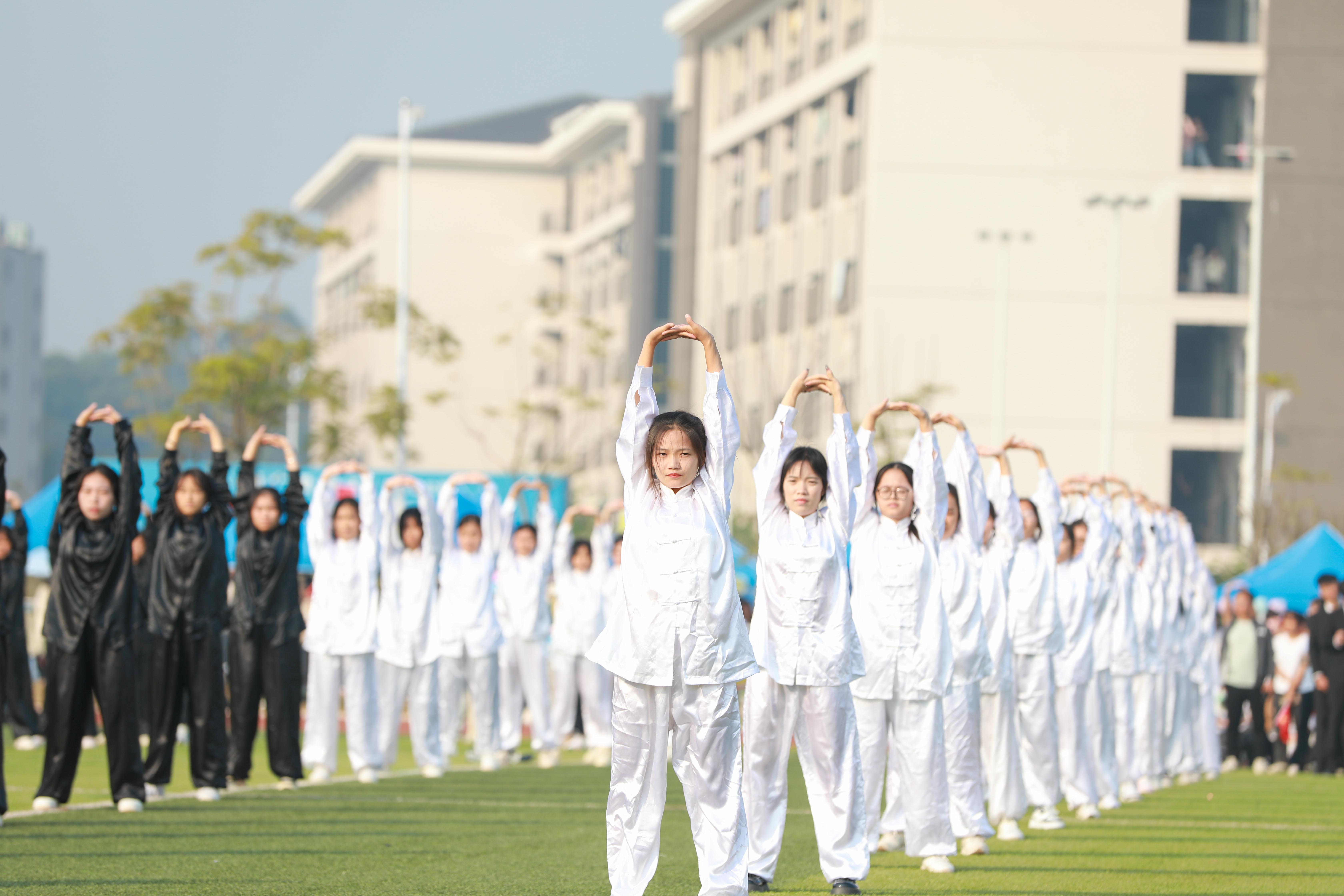 在學院展演階段,金融學院、數字貿易(工商管理)學院和信息技術學院分別帶來了《一起向未來》、《We Rock》、《文化交融》的團體操表演,歡快的舞步、飽滿的熱情流露出各學院運動健兒們積極向上的體育精神;人文教育學院組織來自各學院的同學來帶了大型太極拳表演和《加油 AMIGO》啦啦操表演,太極拳一招一式動如行云流水,靜則穩如泰山,剛柔并濟、氣勢磅礴,充分展示了中華傳統文化的魅力,啦啦操隊員們手持紅色花球,熱情洋溢的笑容伴隨著激昂的舞曲,動作整齊劃一且充滿力量,盡顯金院學子朝氣蓬勃的精神風貌,贏得了全場熱烈的歡呼與喝彩。