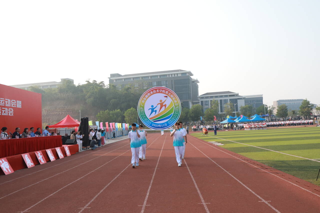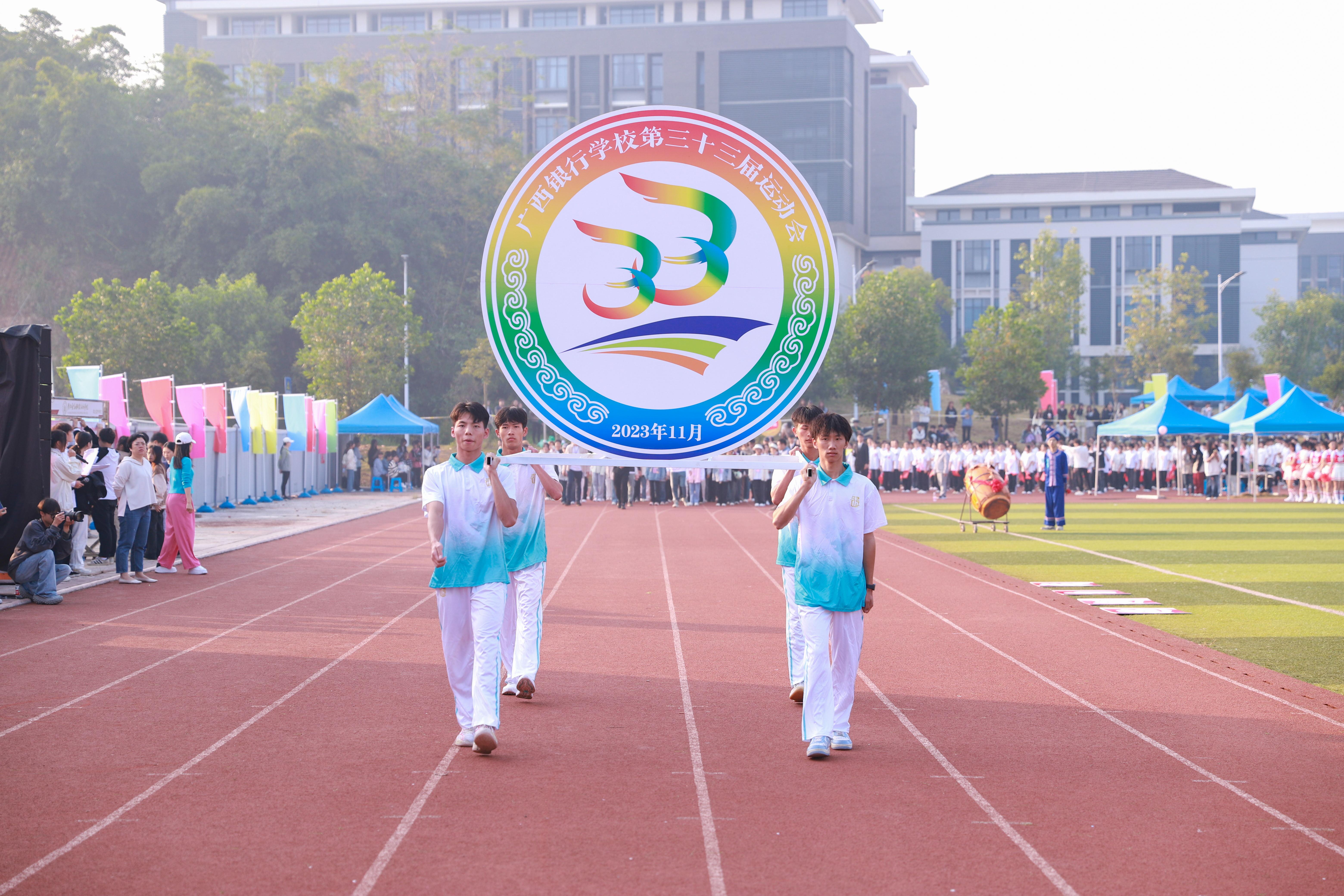 志愿者護送廣西金融職業技術學院運動會會徽入場