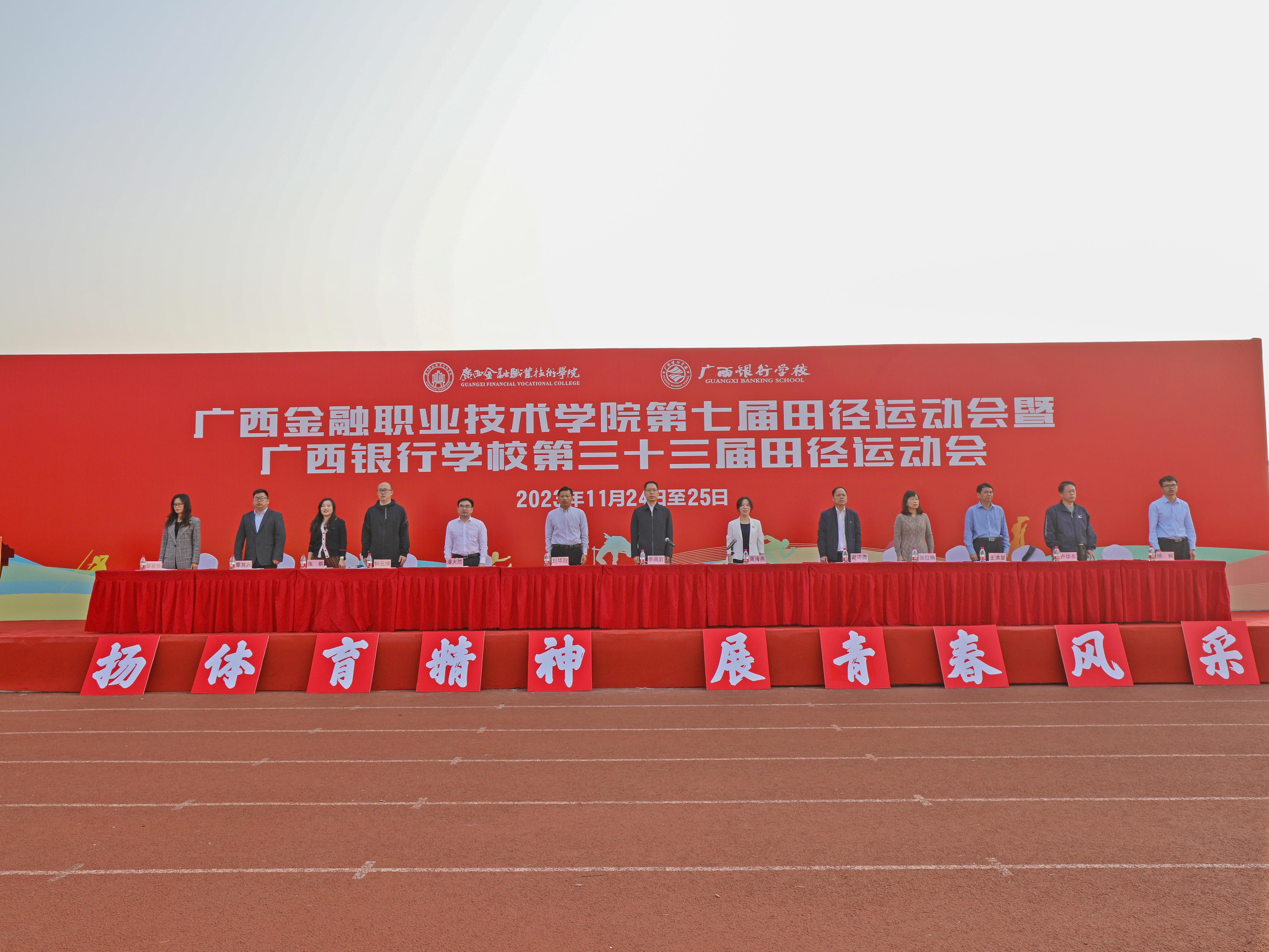 為全面貫徹黨的教育方針,弘揚中華體育精神,豐富校園文化生活,11月24日,廣西金融職業技術學院第七屆暨廣西銀行學校第三十三屆田徑運動會開幕式在我校西校區田徑場舉行。黨委書記李高巖、校長莫海燕、副校長謝沛善、潘大勝,各二級學院及相關職能部門負責人出席開幕式。李高巖書記發表致辭,莫海燕校長主持開幕式。
