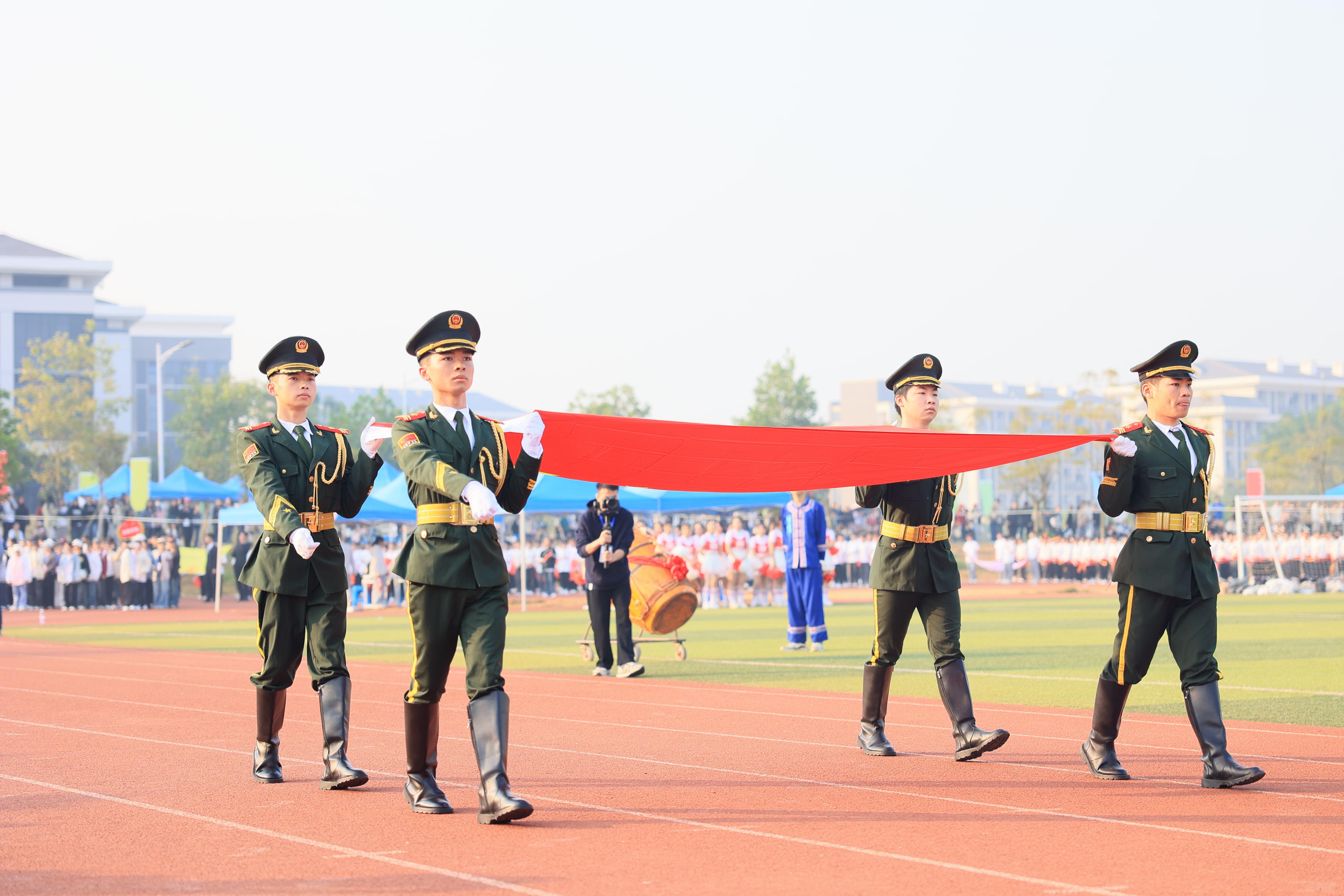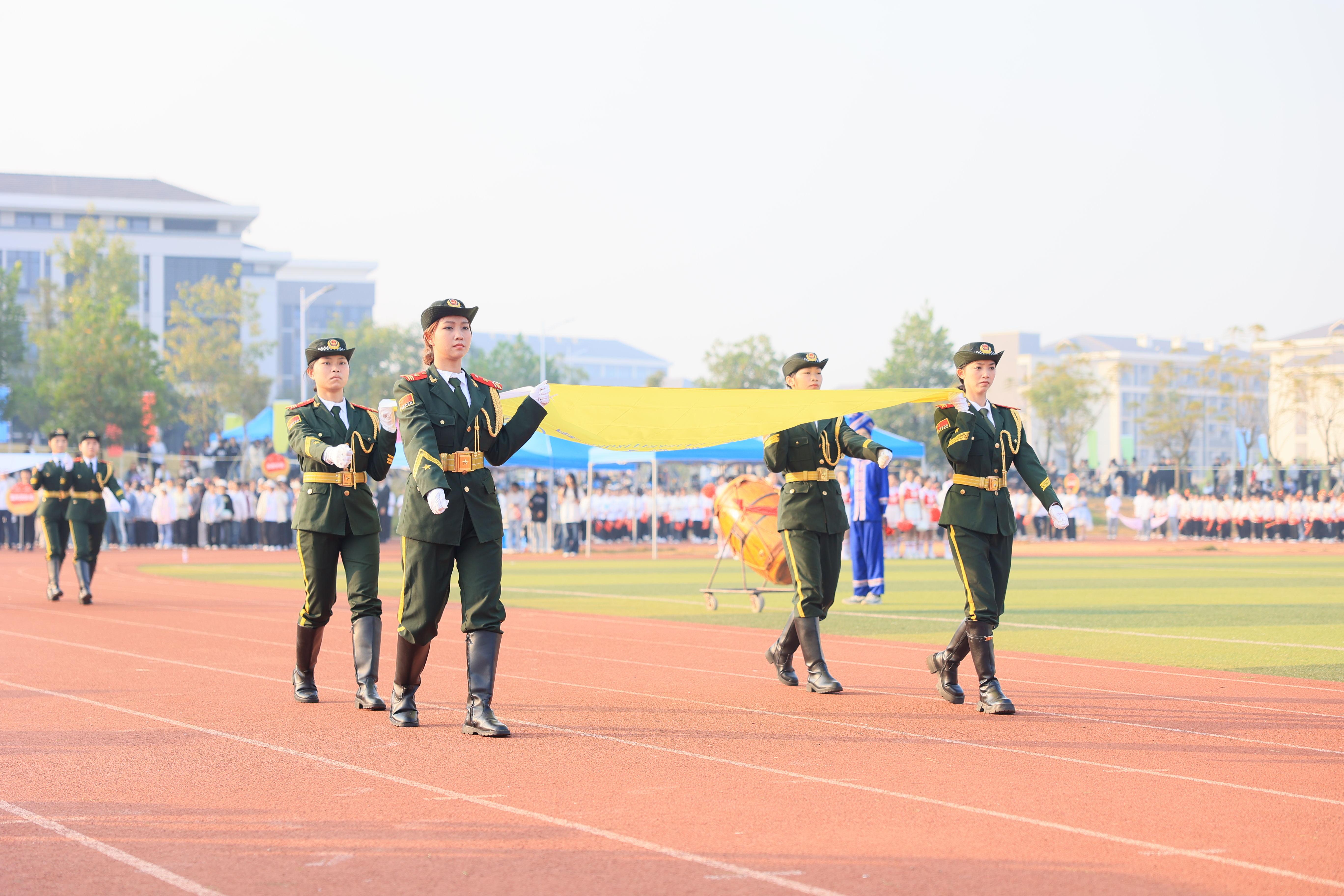伴隨著雄壯的《義勇軍進行曲》,國旗護衛隊身著戎裝,腳步鏗鏘,護送國旗、校旗、會徽率先入場。裁判員方隊和各學院代表方隊意氣奮發、斗志昂揚,他們邁著整齊的步伐依次走過主席臺,充滿了對這場盛會的期待與向往。其中,國際教育學院方陣十分亮眼,20名來自老撾、柬埔寨的青年學子作為我校首屆國際學生,象征著中外青年交流的橋梁和友誼,更開啟了我校國際化辦學的新篇章。