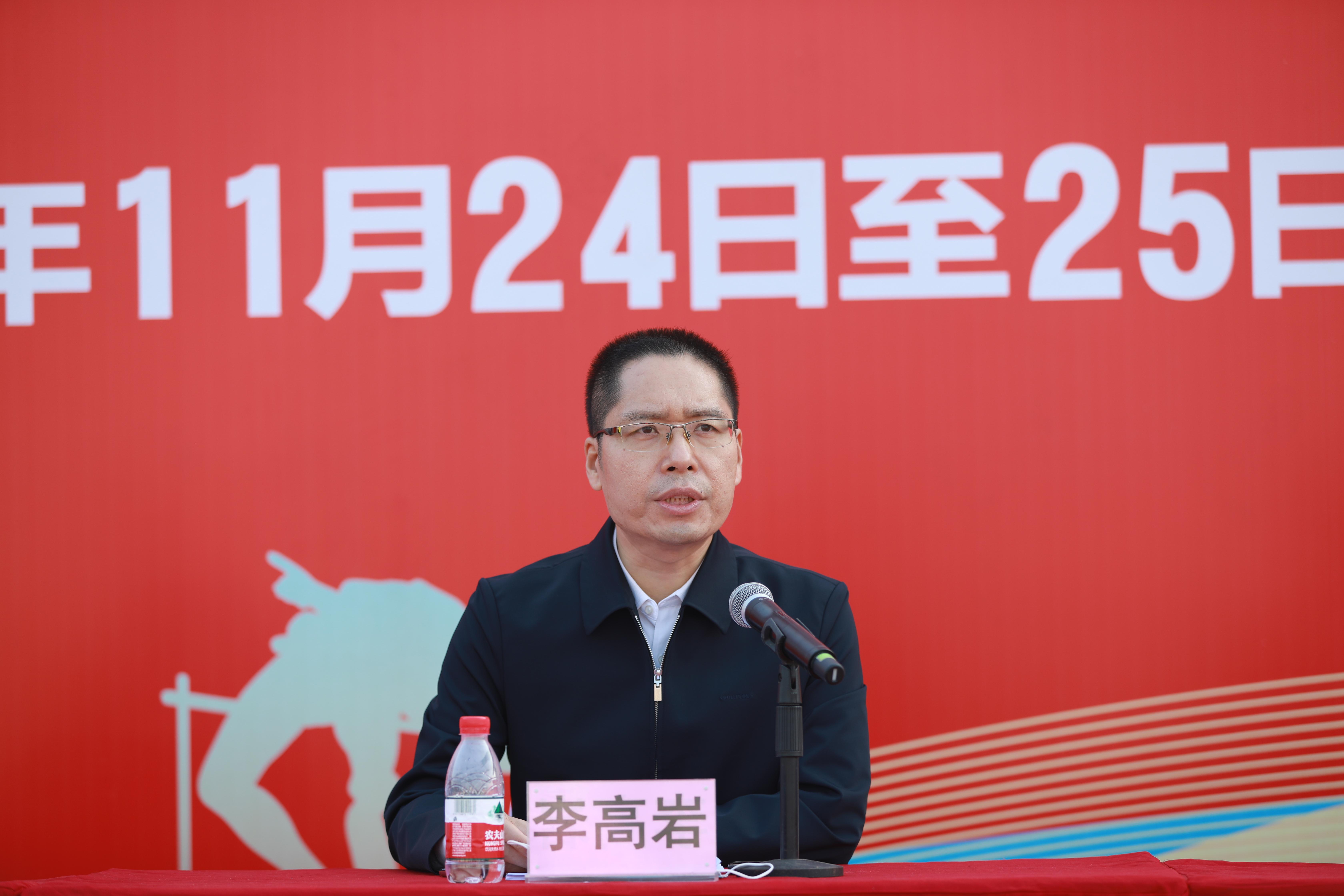 李高巖書記在開幕式致辭中,首先對此次校運會的勝利召開表示熱烈的祝賀,同時向為籌備運動會辛勤付出的老師和同學們表示衷心感謝,也向積極備賽、踴躍參賽的運動員們致以親切問候。李高巖書記指出,學校積極貫徹落實習近平總書記關于建設體育強國的指示精神,重視培養學生體育鍛煉的興趣和習慣,強調“立德”與“樹人”辯證統一,“健康”與“幸福”同向互生,希望同學們在體育競技中享受樂趣、增強體質、健全人格、鍛煉意志,在奮斗與拼搏中弘揚中國體育精神,在速度與激情中展現中國青年力量。李高巖書記寄語廣大師生,一是希望全體運動員勇于挑戰,超越自我,賽出成績,賽出水平,賽出風采;二是希望全體裁判員、工作人員恪盡職守、公平公正,熱情服務,確保各項比賽順利進行;三是希望全體同學遵守紀律,文明觀賽,發揚奉獻精神,增強服務意識,為運動員們做好后勤保障工作。