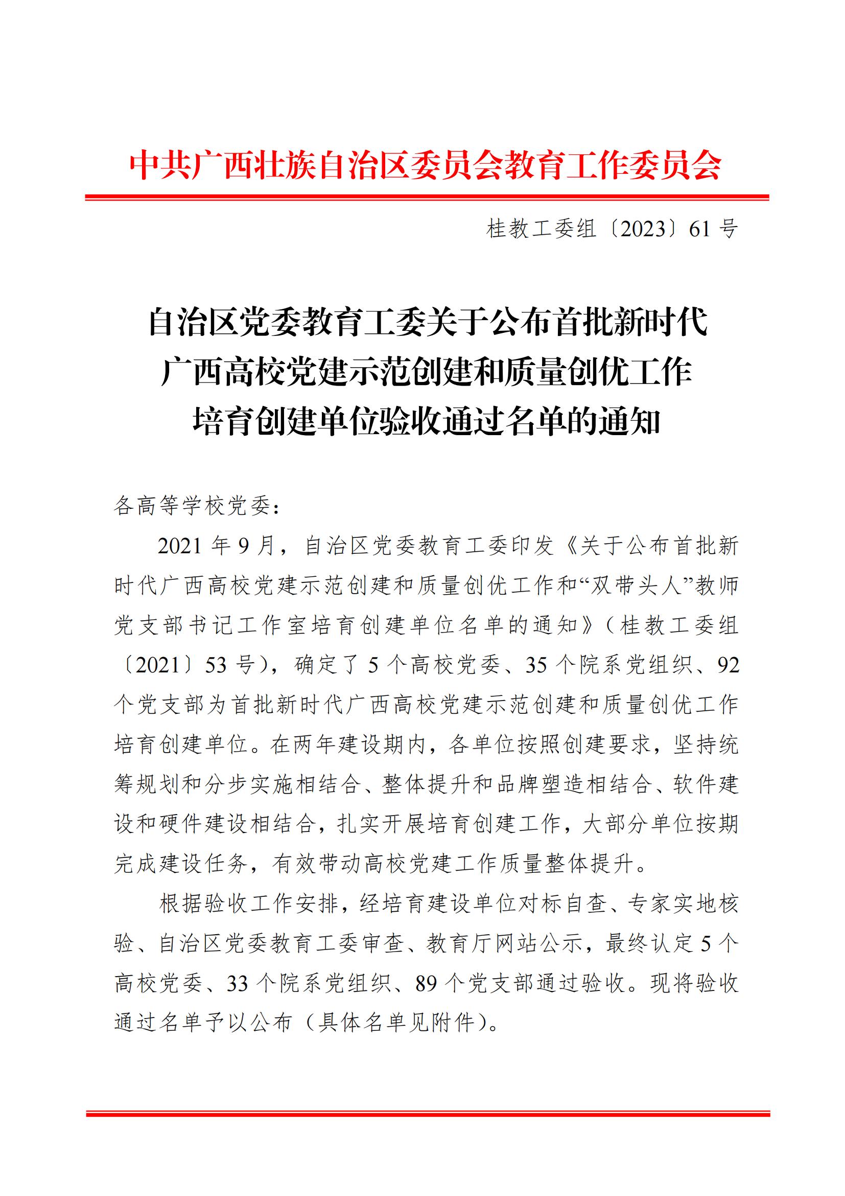近日,自治區黨委教育工委公布了首批新時代廣西高校黨建示范創建和質量創優工作培育創建單位驗收通過名單,我校會計系黨支部作為自治區黨建樣板支部建設單位順利通過此次驗收。