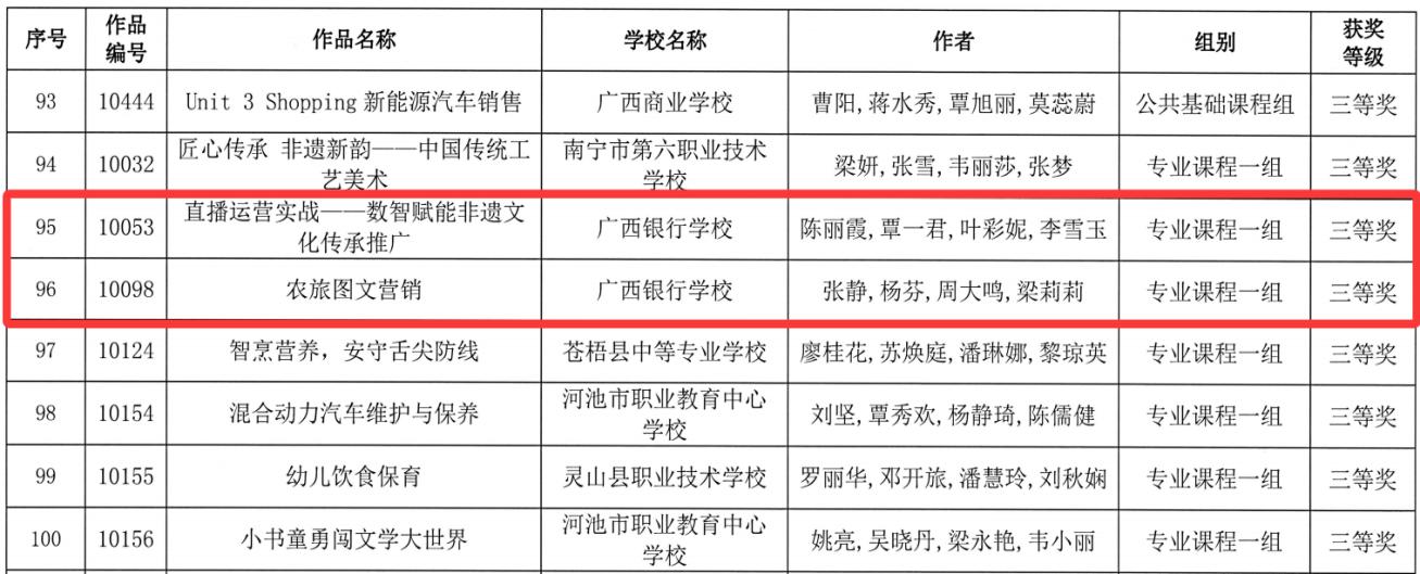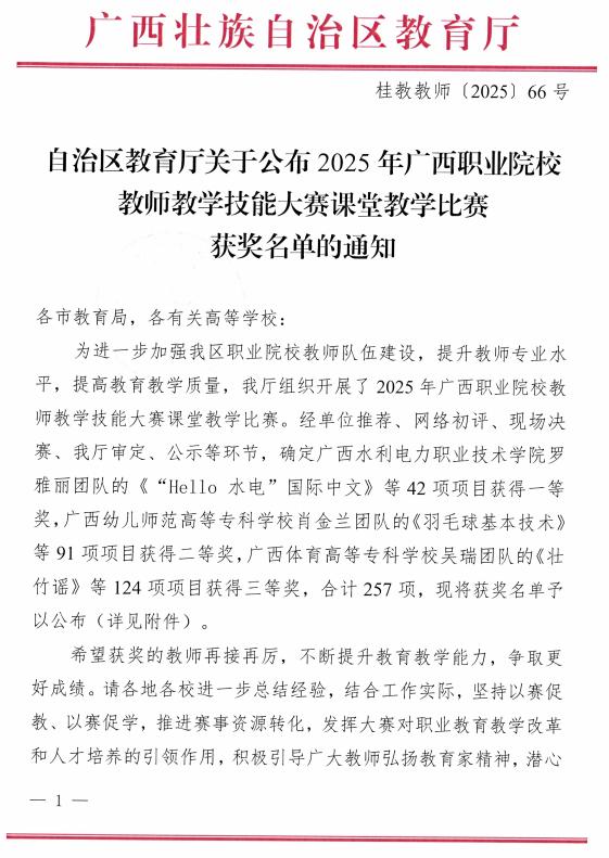 近日,自治區教育廳公布了2025年廣西職業院校教師教學技能大賽課堂教學比賽獲獎名單,廣西金融職業技術學院(廣西銀行學校)教師團隊表現優異,共獲得兩項二等獎和兩項三等獎。