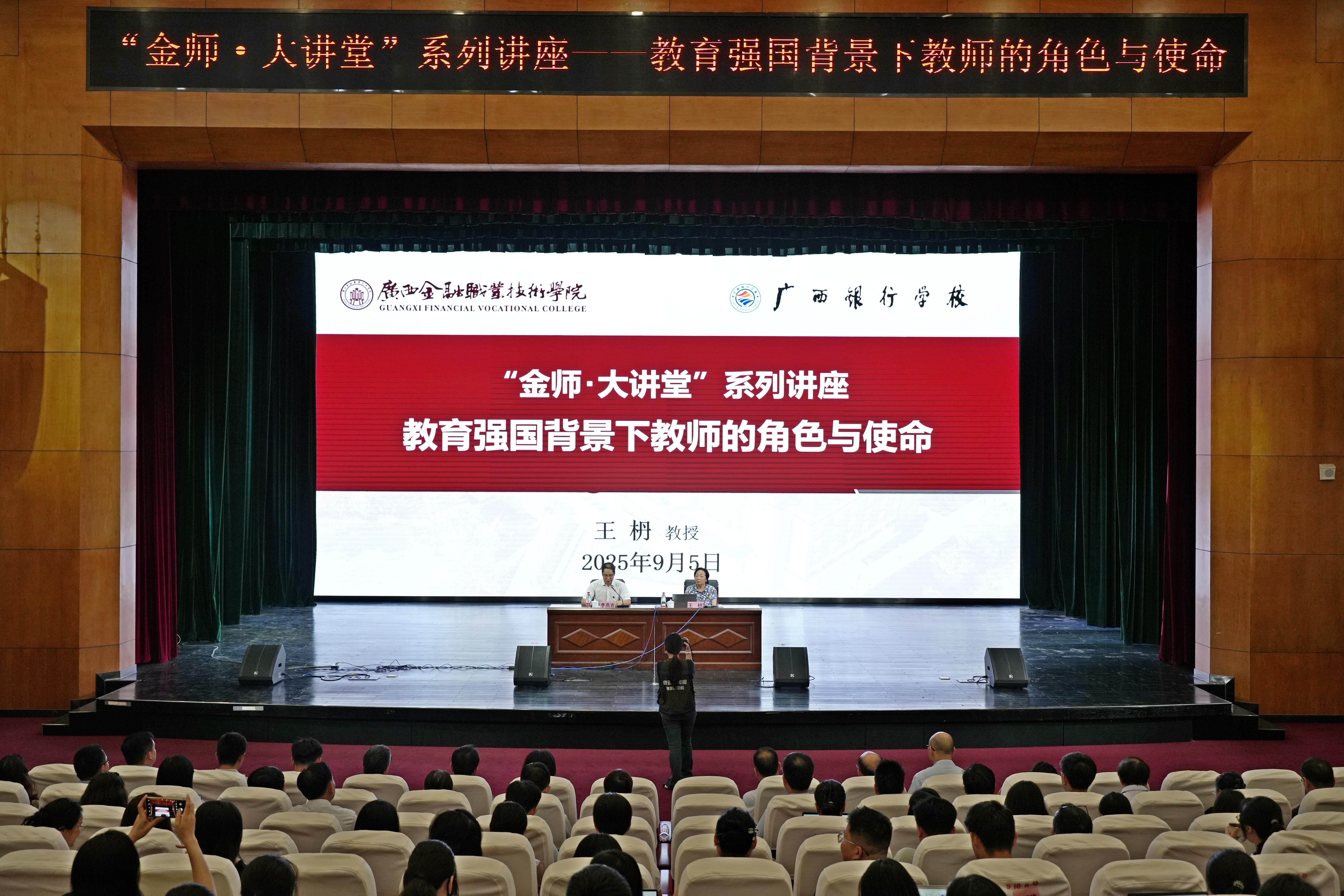 2025年9月5日,我校成功舉辦首期“金師·大講堂”系列講座。“金師·大講堂”系學校為應對“十五五”時期轉型發展與提質增效需求,切實提升全校教職工思維素養與專業能力,特邀區內外知名專家學者主講的系列學術活動,原則上每月舉辦一期。本次講座作為該系列活動的開篇之作,同時亦為教師節專題活動。