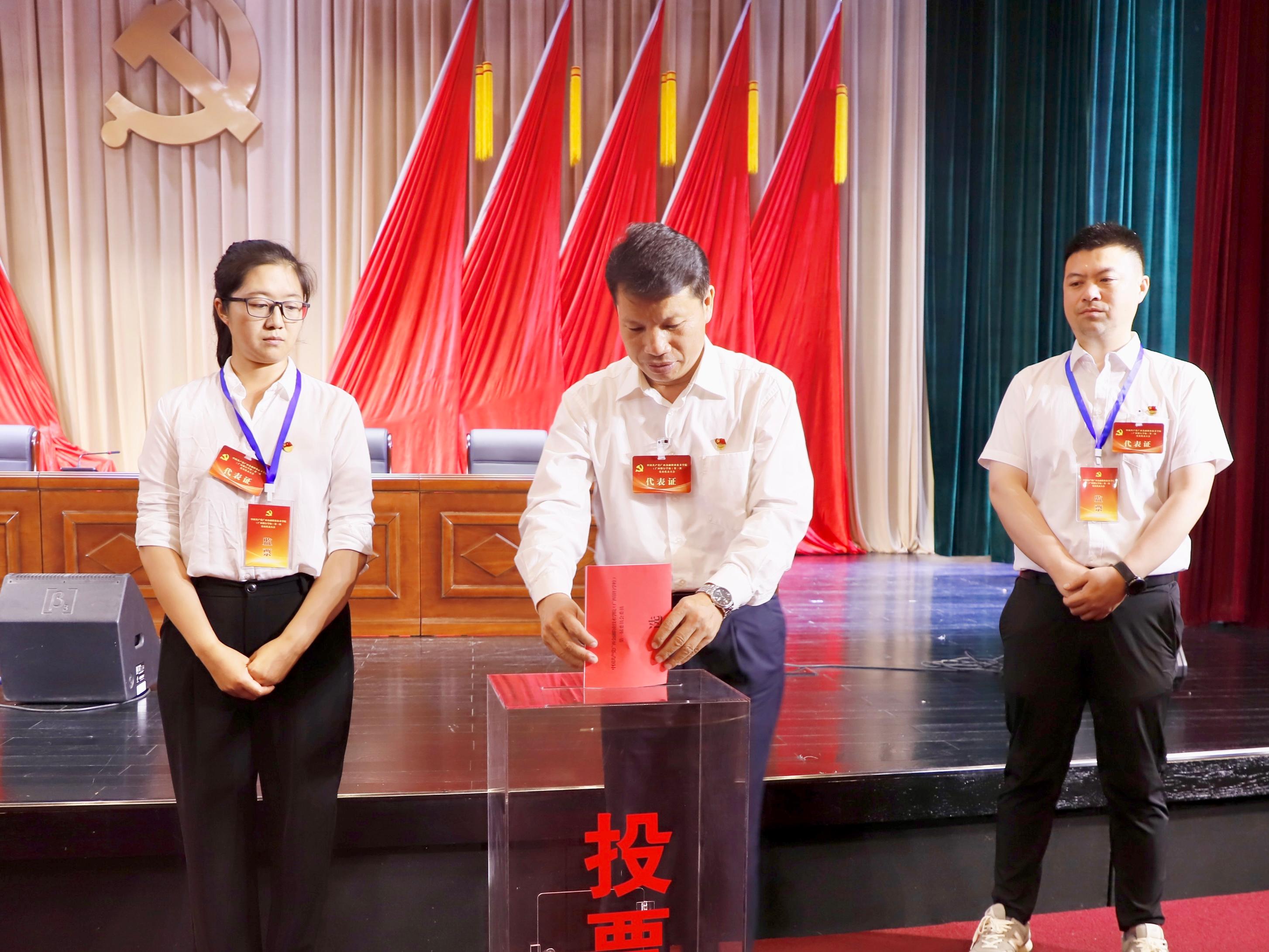 當天下午,中國共產黨廣西金融職業技術學院(廣西銀行學校)第一次黨員代表大會舉行選舉大會和閉幕會。